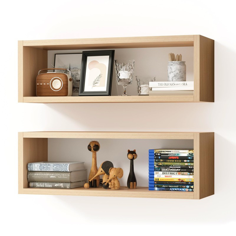 Kaboon 24in Floating Cube Shelves Set of 2, Display Shelves Wall Mount, Decorative Hanging Shelves for Kitchen Living Room Office,(Light Walnut, Rectangle 2 Cubes)