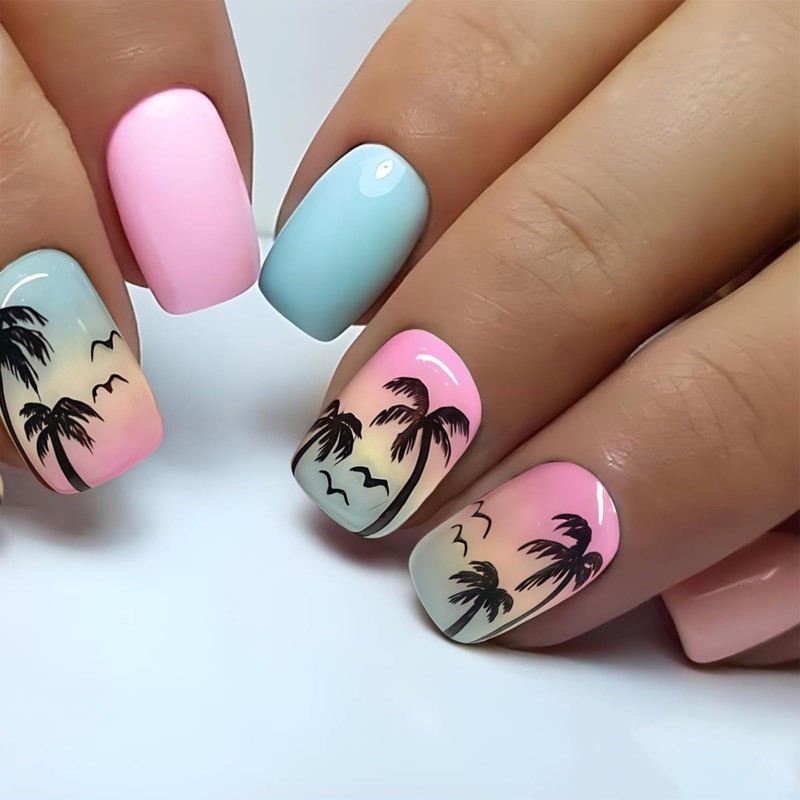 - Summer design: These palm nails bring a tropical touch to your fingertips, ideal for sunny days