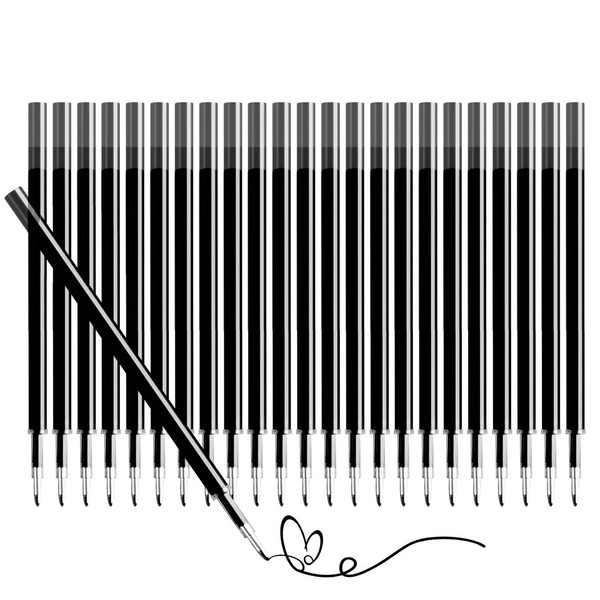 Kabwea Pack of 24 Black Refills, Compatible with Legami, 0.7 mm Erasable Rollerball Pen, Height 13 cm, Replacement Refill for Gel Pen, Erasable, Replaceable Refill (Black)