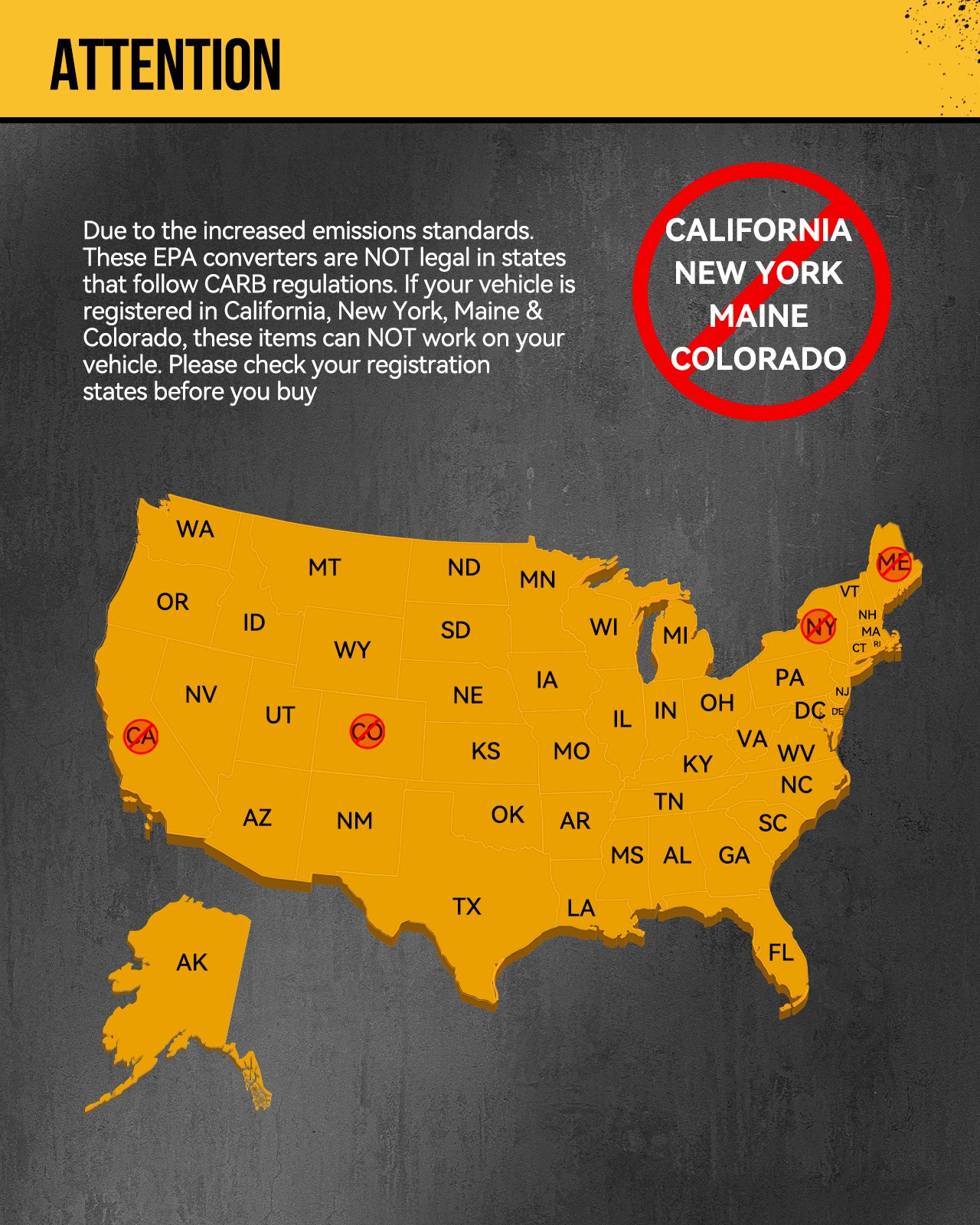 If your vehicle is registered in California, New York, Colorado & Maine, do not purchase this part.
