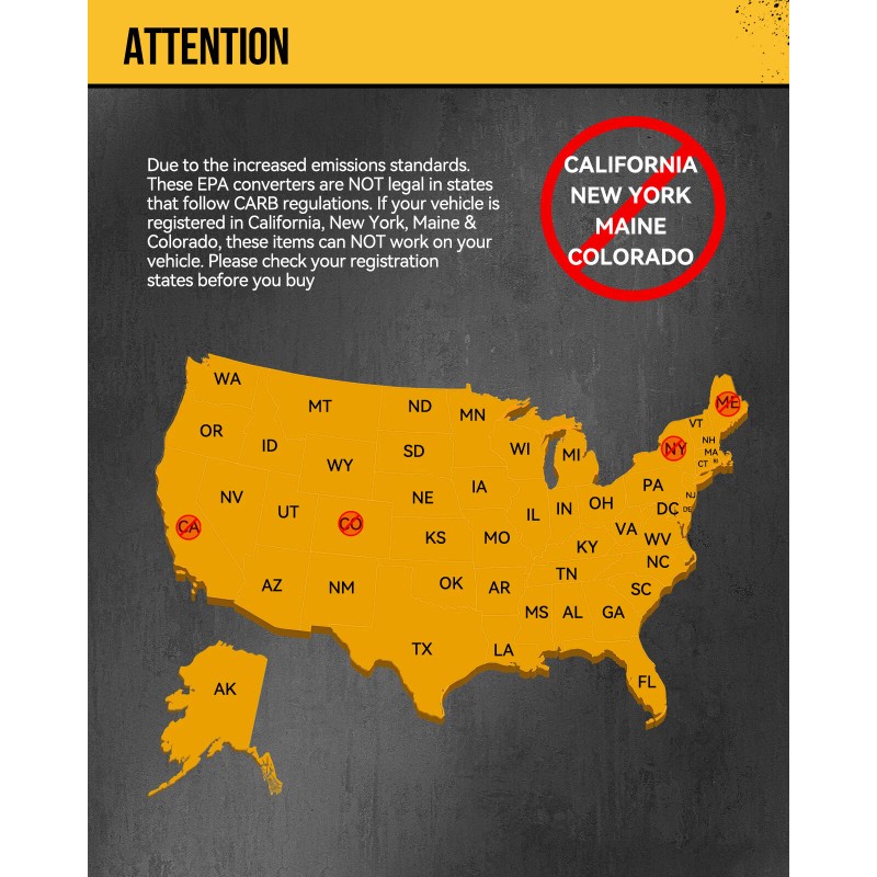 【 Compliance with OBD III 】The direct-fit catalytic converter is compliant with OBD III Standards but not with CARB. Thus, it can be used in most states except California, not legal for use on vehicles required to meet CA emission standards.