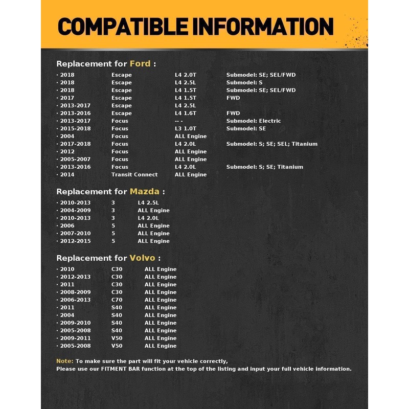 - KAC Ceramic Disc Brake Pads Set Compatible with Ford 2013-2018 Focus 2.0L, Ford 2004-2007 2012 Focus, Mazda 2010-2013 3 2.0L, Ford 2013-2016 Escape 1.6T, Ford 2013-2018 Escape 2.5L, Mazda 2004-2009 3, Ford 2017-2018 Escape 1.5T, Mazda 2006-2010 2012-2015 5, Mazda 2010-2013 3 2.5L, 2004-2011 S40, Ford 2014 Transit Connect, 2006-2013 C70, Ford 2015-2018 Focus 1.0T, 2008-2013 C30, 2005-2011 V50, Ford 2013-2017 Focus -, Ford 2018 Escape 2.0T
