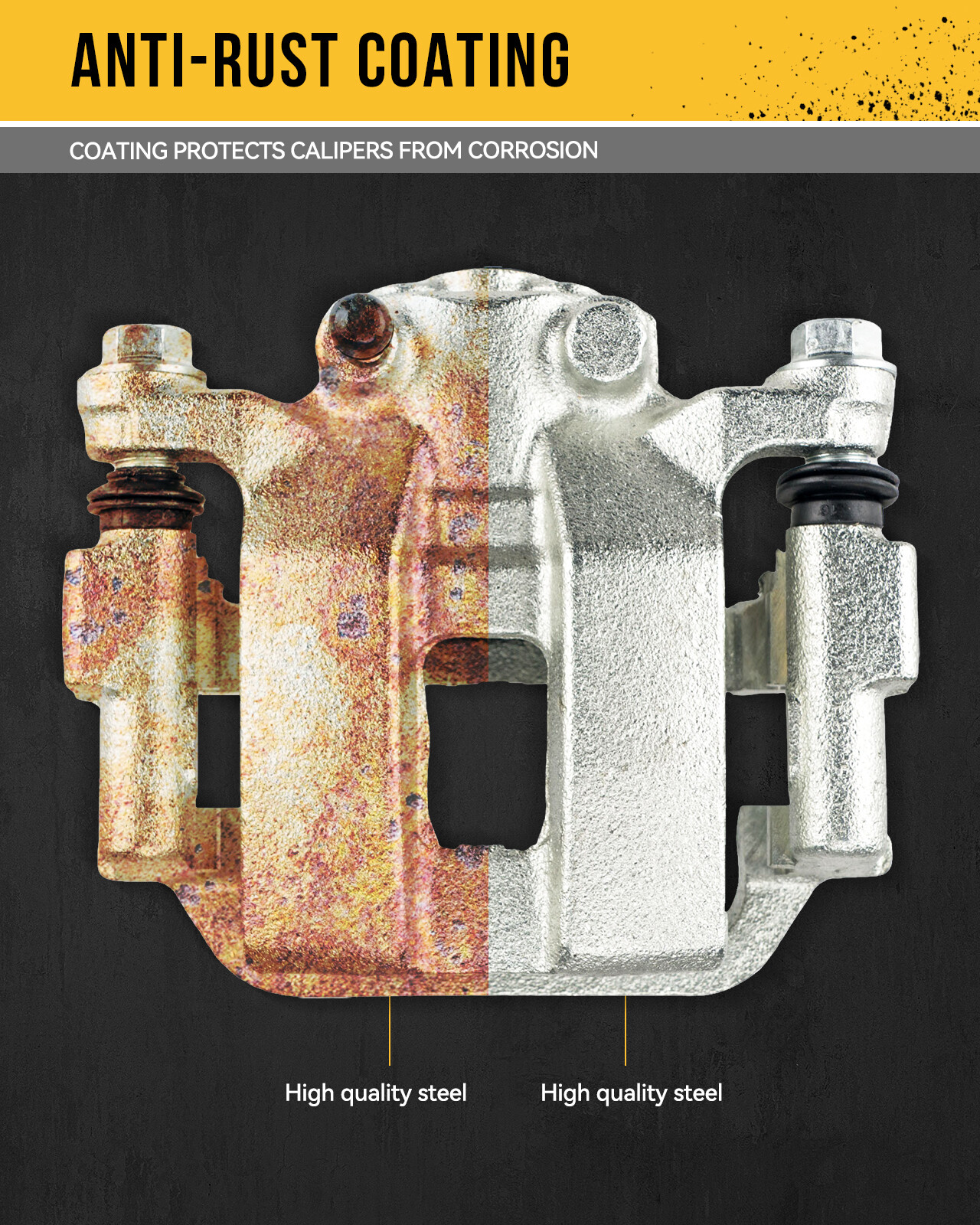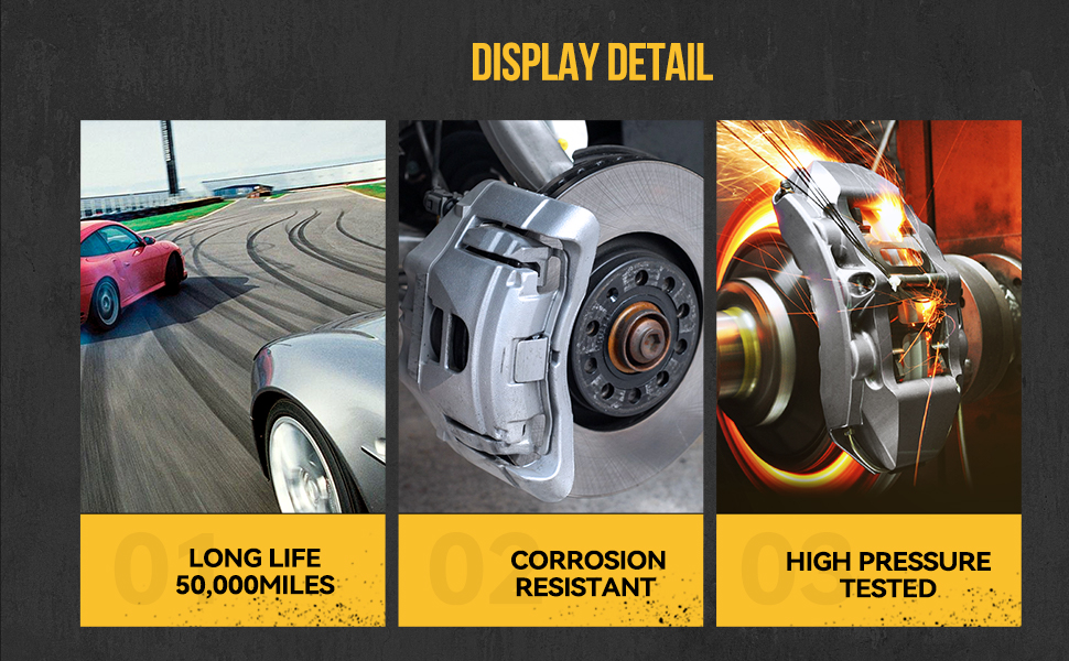 Ductile Iron:KAC brake calipers kit are made of the same ductile iron as the original. Cast iron has strong heat resistance, which effectively reduces the risk of deformation or breakage during sudden braking
