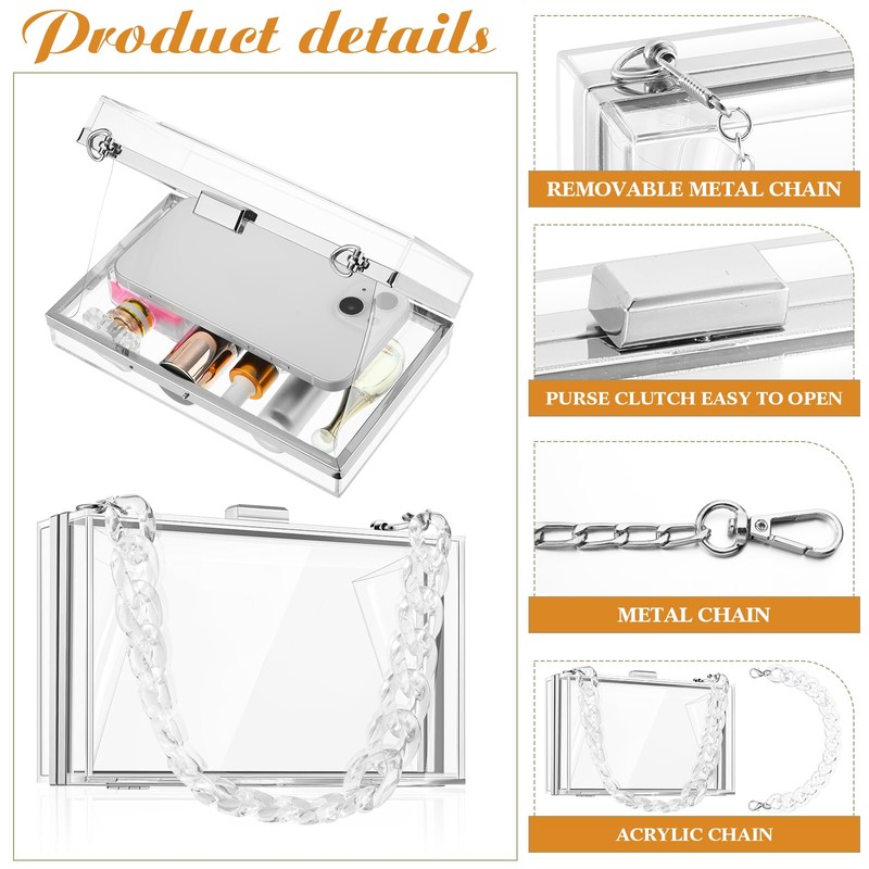 - Sufficient to Use and Share: you will get 4 pieces of clear clutch purses for women, and 4 pieces of removable acrylic chain straps, adequate quantity to meet your various use and replacement needs