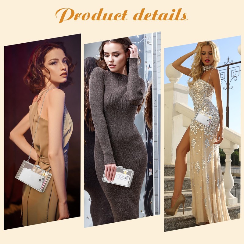 - Enough Capacity: the acrylic clutch purses for women measure about 7.09 x 4.33 x 2.17 inches/ 18 x 11 x 5.5 cm, enough space for easily holding your cellphone, glasses, lipsticks, cosmetics, mirrors, cards, keys and other small items