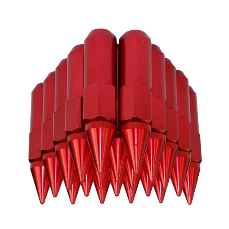 KACEPAR Extended Tuner Aluminum Wheels Rims Lug Nuts, M12X1.5 Extended Tuner Aluminum 90mm/3.54in Wheels Rims Lug Nuts with Spike, Red