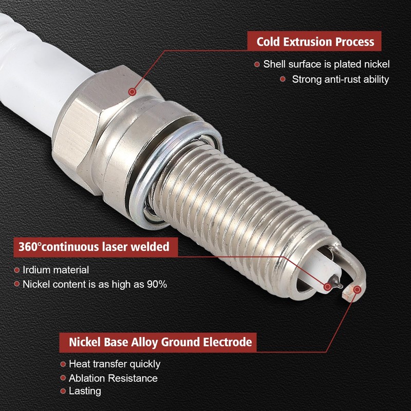 - Iridium Spark Plug: center electrode adopts 360°continuous laser welded and cold extrusion process, nickel content is up to 90% which plays role in rapid heat transfer, strong resistance to ablative corrosion and rust; high alumina ceramic (95 ceramic) brings stable thermal conductivity and heat resistance. OE number: 97390, LKR7BGPS