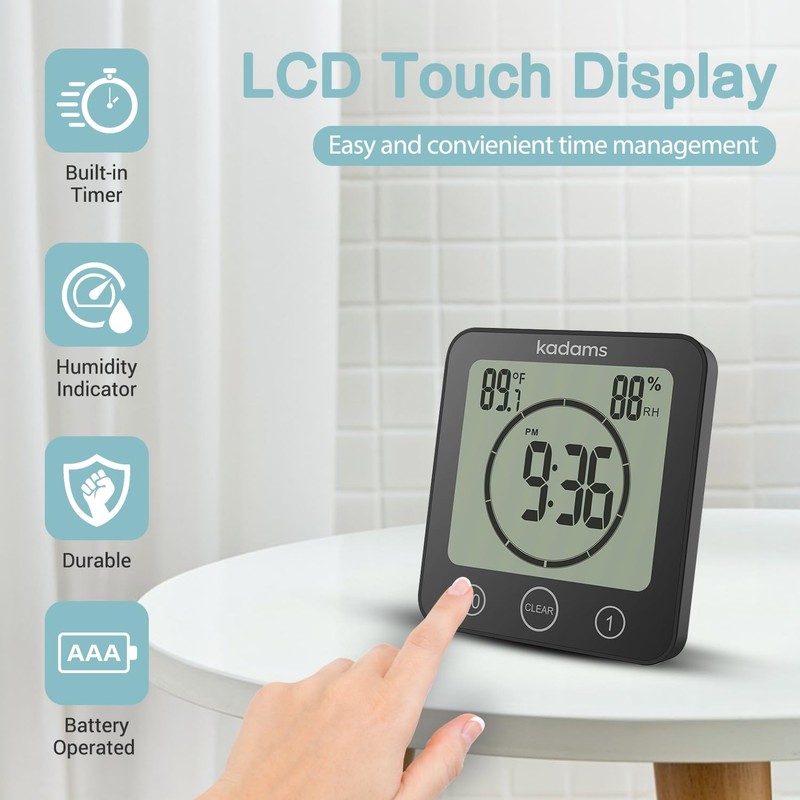 - 【 Efficient Time Management】Stay organized and save resources with KADAMS water-resistant shower clock featuring an LCD touch display, designed to help you keep track of your daily schedule.