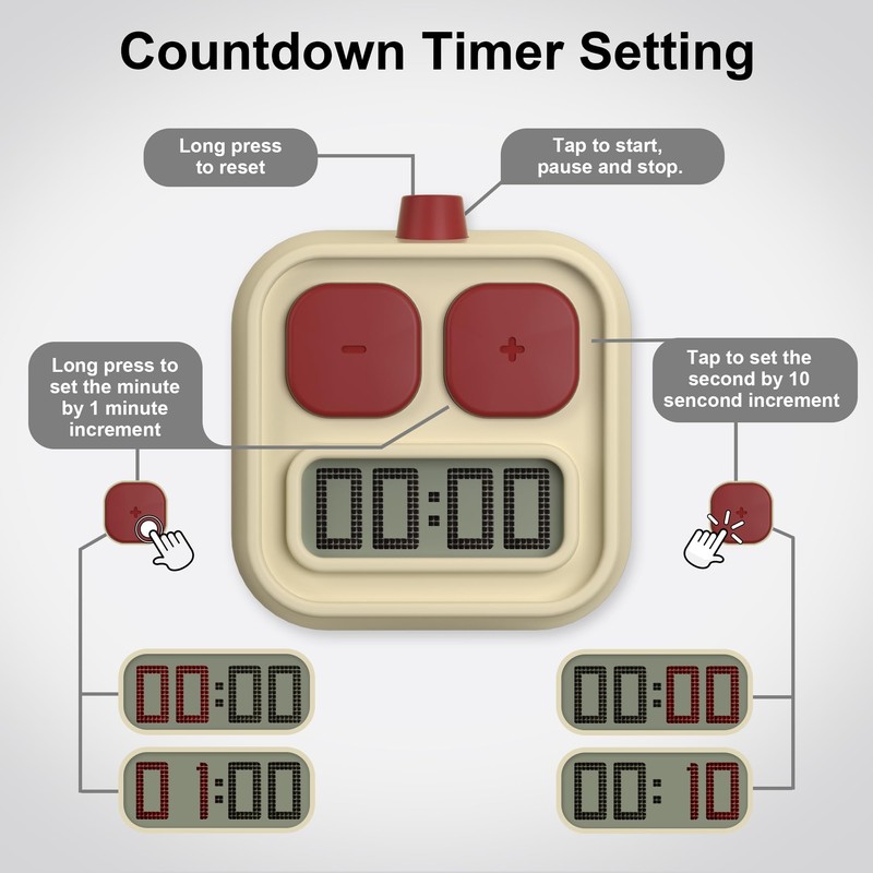 - 【Easy Operation】The kitchen timer for cooking features simple button controls for setting the time quick and easy.