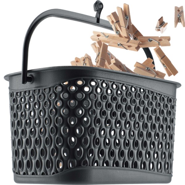KADAX Classic Clothes Peg Basket, Peg Basket for Clothesline, Peg Basket for Hanging, Peg Bag for Clothespins, Baskets with Hooks (Grey)