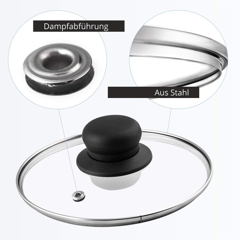 - The product guarantees safe use, so the risk of burning the hand with a hot lid when preparing your favourite goulash, herb, spaghetti, pierogies Fish and rice significantly reduced. The advantage of the lid is its light weight, which makes it easy to lift, carry and wash it off. That's why cooking delicious vegetables and delicious potatoes is convenient for children or friends. The opening in the lid allows steam extraction.