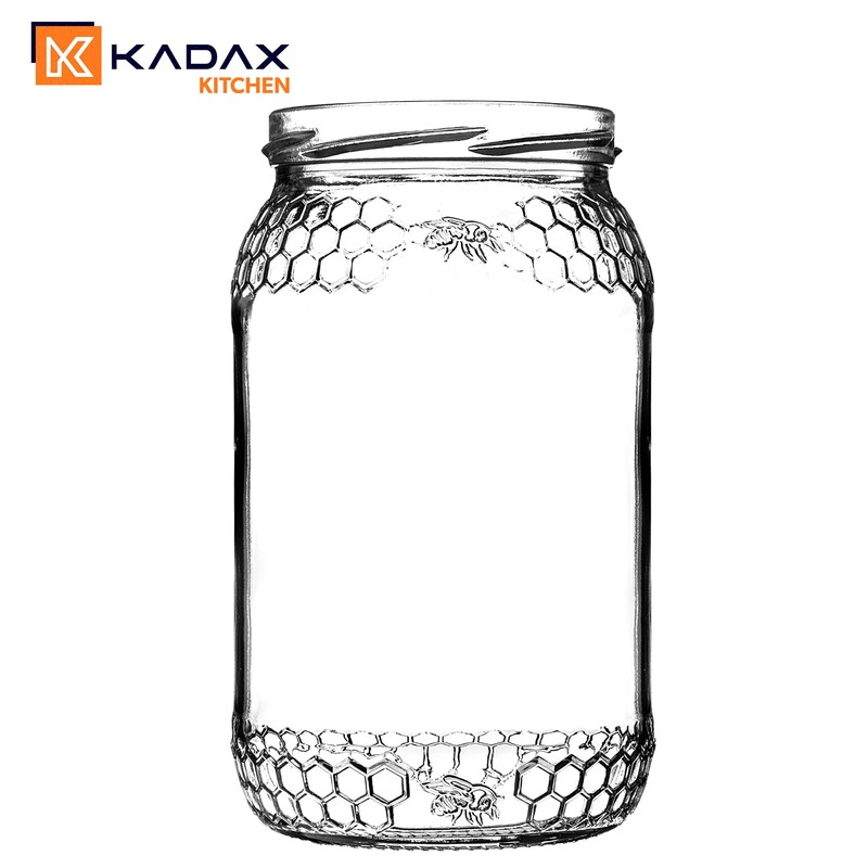 KADAX Honey Jars, 900 ml, Preserving Jars with Fi82 mm Screw Lid, Jars for Honey, Jam Jars, Screw Jars, Preserving Jars (Bee, Pack of 8)