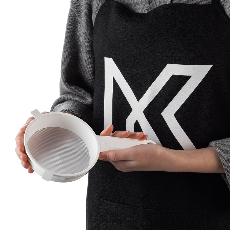 The minimalist design of this kitchen utensil blends stylishly into any kitchen decor and combines aesthetics with maximum functionality. Its versatility makes it an essential tool for the daily kitchen routine. Let yourself be inspired by the quality and precision of this strainer and experience how easy and clean the processing of your favourite ingredients can be!