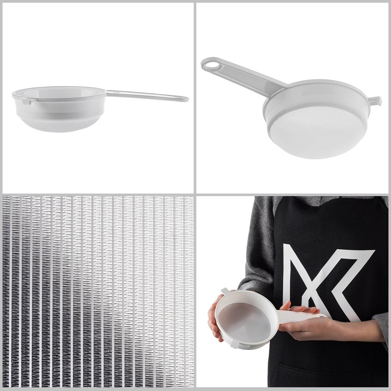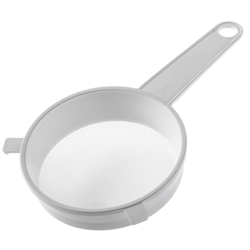 KADAX Kitchen Sieve 12 cm, Fine Plastic Sieve, Fine Mesh Sieve Made of Plastic, Plastic Strainer for the Kitchen, Fine Plastic Strainer with Long Handle (White)