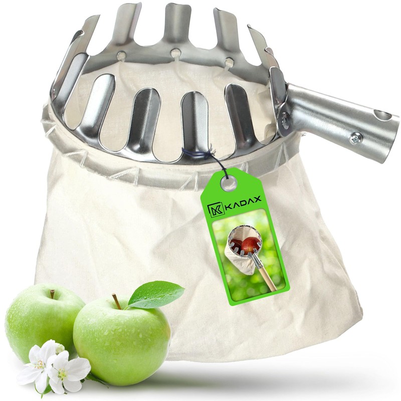 - Picking ripe apples is pure joy under the condition that you only need some for a cake. It becomes problematic when you have to pick the fruit from the whole garden. Save time and energy - grab our picker from the Kadax brand. With our device, you do not need a ladder when harvesting. The ripe fruit falls into the voluminous bag as if by itself and the work is even three times faster than usual.