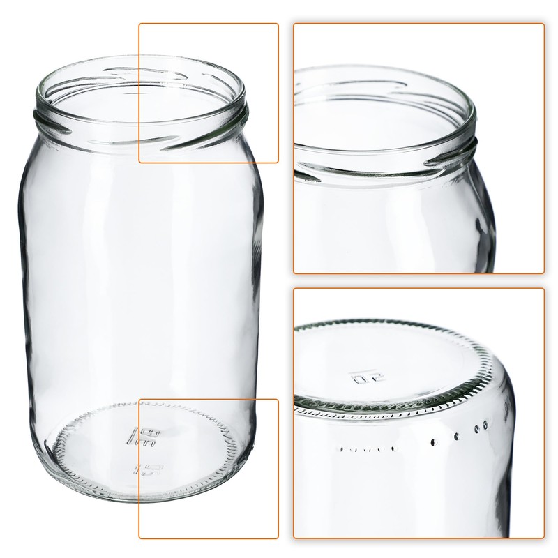 The preserving jars with a volume of 760 ml are ideal for anyone who wants to prepare a large amount of preserves. With a capacity of almost one litre, they are particularly suitable for storing canned fruit and vegetables. You can use them to store sour cucumbers, pickles, mushrooms, but also jams, jams, compote, fruit liqueurs, honey as well as pies, sausage and dry food.