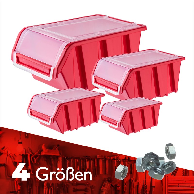 - Various models: the storage boxes are available in the two universal colours red and black. In our offer you will find the 155 x 160 mm and 195 x 120 mm large boxes in sets of 1, 10 and 20 pieces as well as larger boxes individually (230 x 160 mm and 490 x 298 mm).