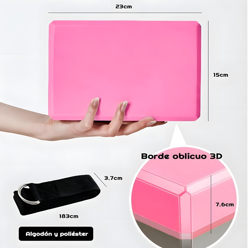 - [Tamaño Ideal] - Cada bloque de yoga mide 23 x 15 x 7,6 cm, con un margen de error de 0,1 a 0,3 cm. Este producto se adapta a la mayoría de las manos y cuenta con correas de estiramiento de yoga de 183 cm de largo y 3,7 cm de ancho, brindando una experiencia de práctica más cómoda.