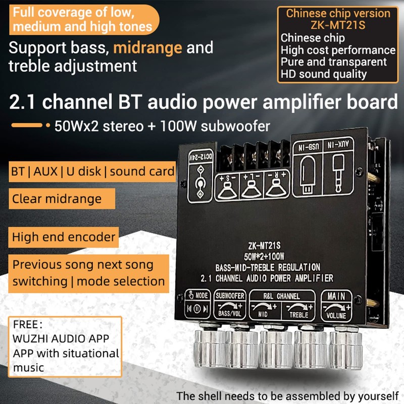 Features: left and right channel 20-50w, 4-8Ω subwoofer 20-100w, 4-8Ω.