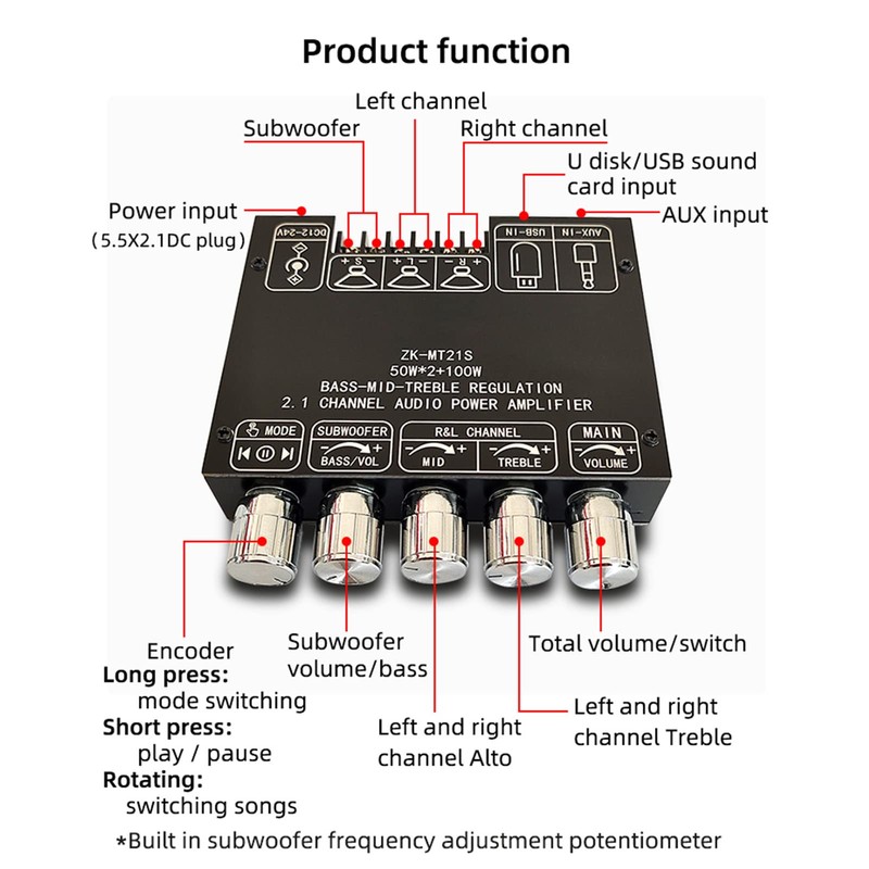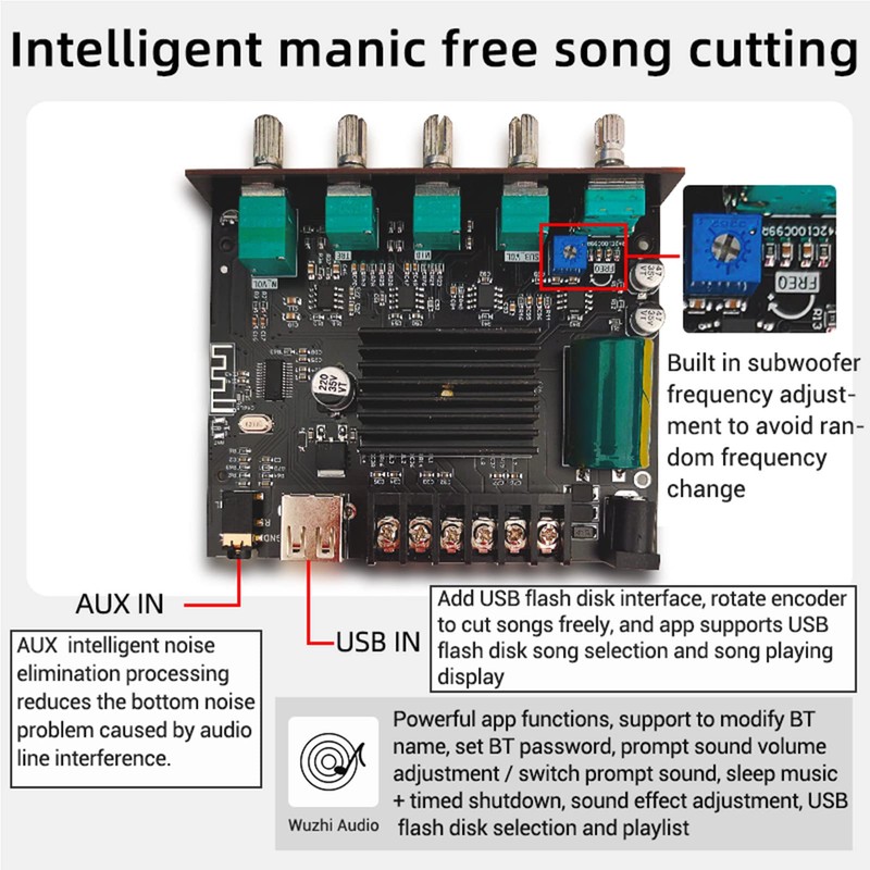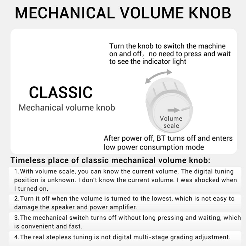 - STEPLESS ADJUSTMENT: The stepless tuning supports the separate adjustment of subwoofer and stereo output volume, which brings you more pleasure. The total volume control is a mechanical potentiometer, also has a clear volume position and rich multi-function buttons.