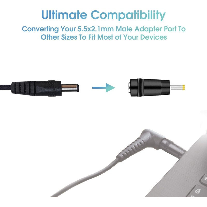 - Compatible Connectors: Features a 5.5x2.1mm male barrel connector, ensuring compatibility with a wide range of devices that require this standard power input. Included DC adapter connector set with 8 individual tips further expands its compatibility for other devices like Echo Smart Speaker & Display, webcam, router, mini PC, projector, CCTV, bluetooth Speaker, etc.