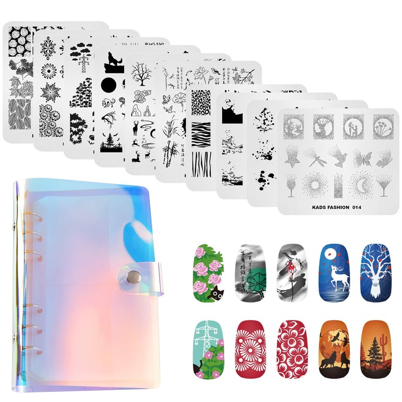 - El juego de placas de estampado incluye: 10 placas de uñas de 9 x 8 cm + 1 bolsa de almacenamiento