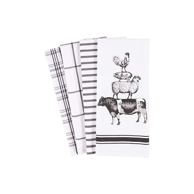 KAF Home Pantry Stacked Farm Animals Kitchen Dish Towel 18 x 28-inch Set of 4