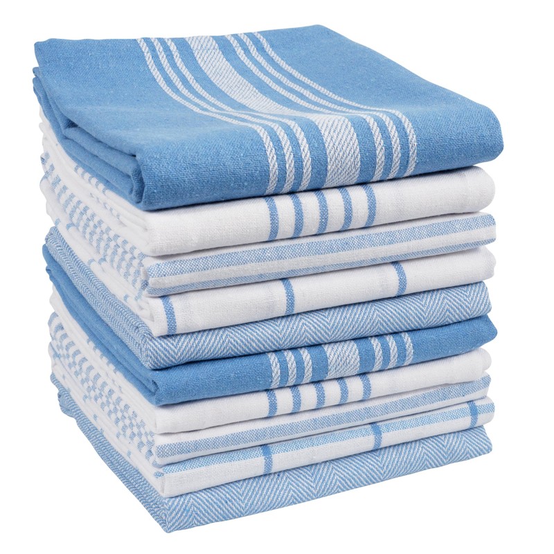 KAF Home Soho Kitchen Dish Towel Set of 10 | 18 x 28 Inch Tea Towels | Soft and Absorbent Mixed Set of Flat Towels (French Blue)