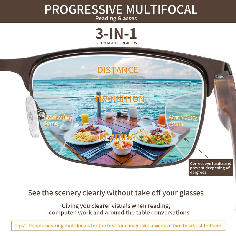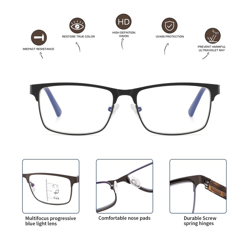 - 【WORRY-FREE SHOPPING】Please feel free to contact us if there is any problem with the progressive multifocal reading glasses, and we will give you a satisfactory solution without hesitation. No risk to try! You will receive men’s full metal frame multifocal reading glasses*2 (Black & Brown), glasses cord*2, quality pouch*2, microfiber glasses cleaning cloth *1. Multifocal reading glasses solves all your needs while making the perfect gift for your friends, family, and yourself this year.