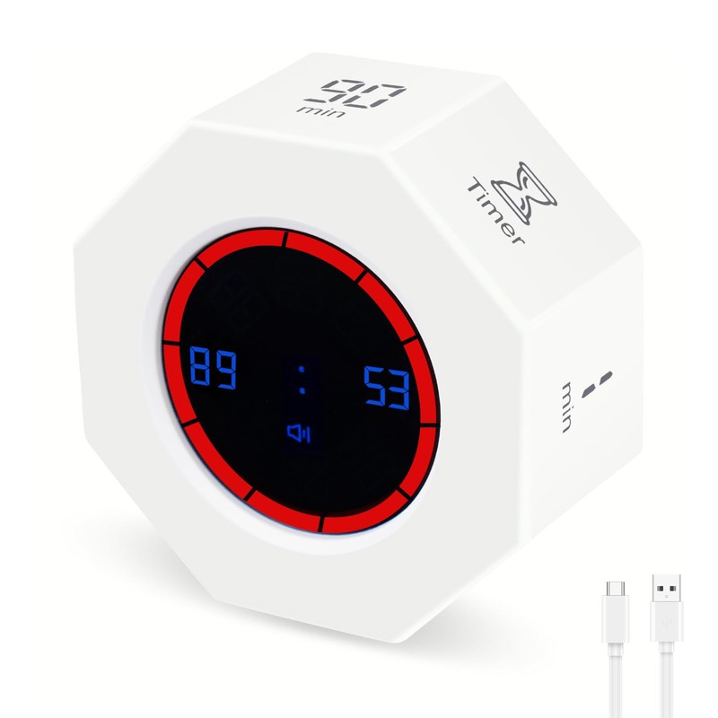 - Gravity-Sensing LCD : This pearl white digital timer features an 8-angle auto-rotating screen with a sleek, modern design and a high-quality ABS case. Its fun and cool countdown methods cater to daily needs for work, study, cooking, and more.