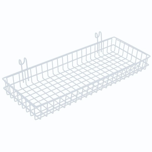 Kaforise Hanging Basket for Wire Wall Grid Panel, Multi-function Wall Storage and Display Basket, Large Size, White