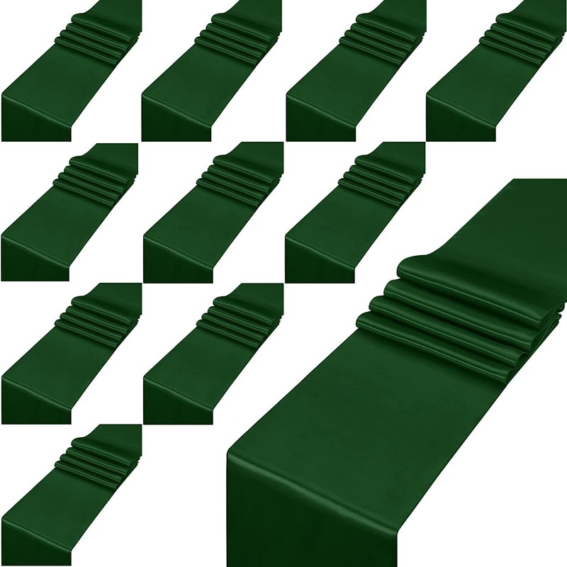 KAHEIGN 12 pieces 30 cm x 275 cm rectangularSatin table runner plain table runner has the luxurious feel and delicate satin gloss, creates a sublime elegance, perfect for weddings, Christmas, Halloween, Easter, Thanksgiving, birthday parties, catering events, dinner parties or daily use, etc. Can be used as decoration in hotels, kitchens and restaurants