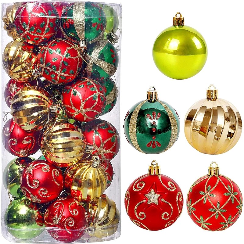 KAHEIGN 30Pcs Christmas Baubles, 6CM Gold Red Green Christmas Ball Ornaments Shatterproof Christmas Hanging Balls Sets for Christmas Tree Holidays Home Xmas Party Decoration (5 Styles)