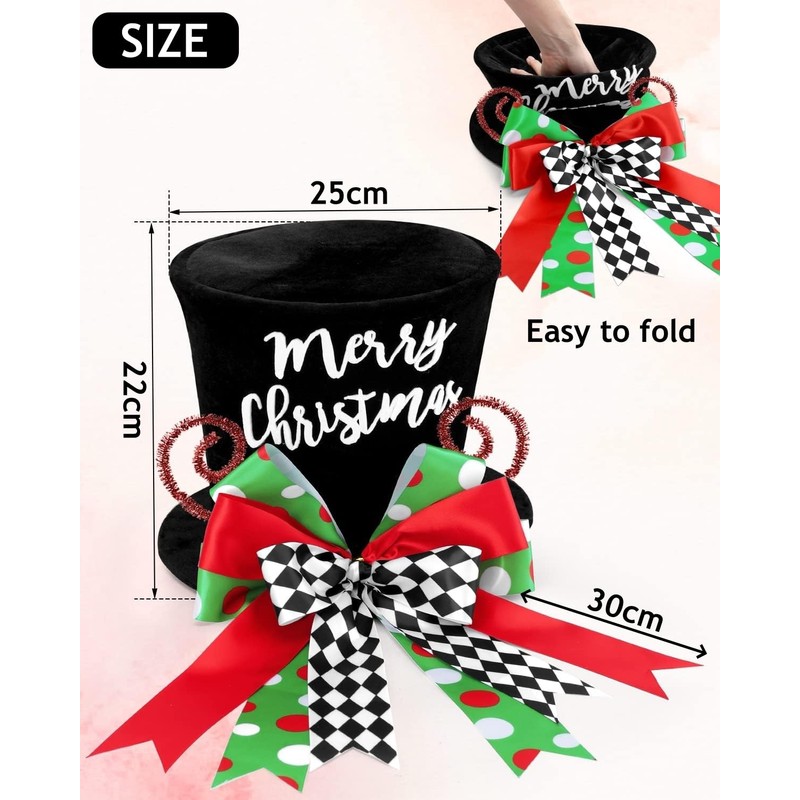 - [Size] Diameter: 25cm, heigth: 23cm, ribbon length: 30cm, suitable for most Christmas trees, if the branch length of the tree is not long enough to support the hat, you may need to fill it up