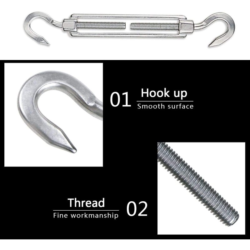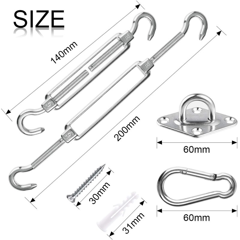 • [Heavy duty] Heavy-duty stainless steel hardware kit for sun shade installation, designed for durability and reliability, heavy-duty hardware for fixing the screen, and work for the sun shade to keep it in tension
