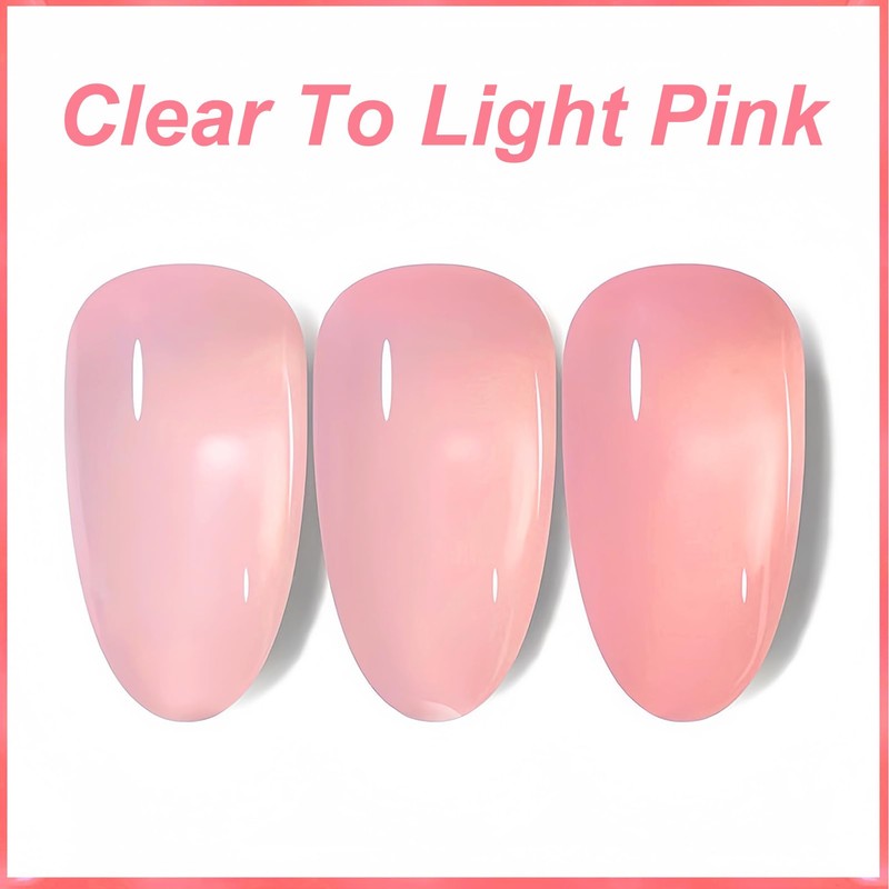 - 【Coral Clear Pink Nail Polish】 This sheer pink nail polish features a translucent jelly finish. It would be light clear pink or coarl pink color with different layers. Water-based, non-toxic, vegan, cruelty-free, and safe for daily use – no UV lamp required