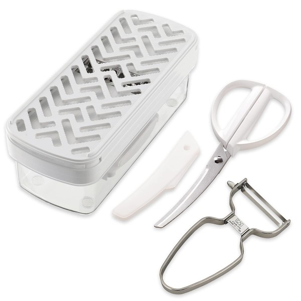 Durable and hygienic stainless steel peeler. The handle shape makes it easy to see the ingredients while peeling, and the potato sprouts are included. - Curved Kitchen Scissors (Case Included) White