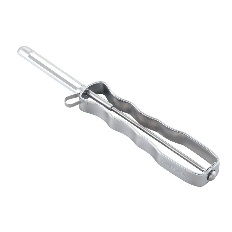 - I shaped peeler is good for removing round items. Also great for peeling apples and potatoes and beveling vegetables