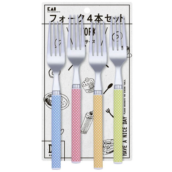 Kai FA5176 KAI Fork, Large, Set of 4, Dot Pattern, Made in Japan