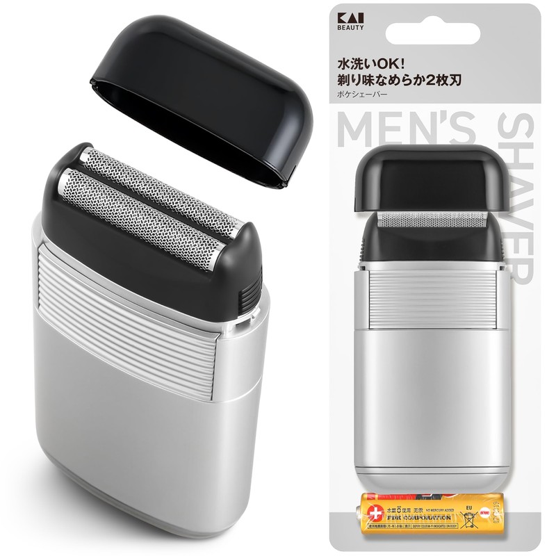KAI KQ1839 Pocket Shaver, 2 Blades, Waterproof, Washable, Cap Included, Compact