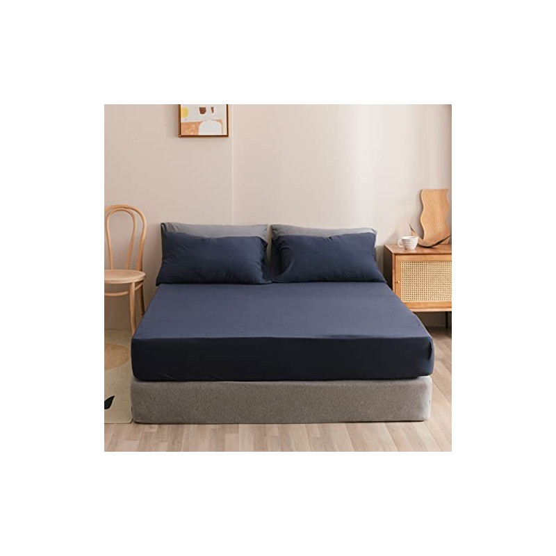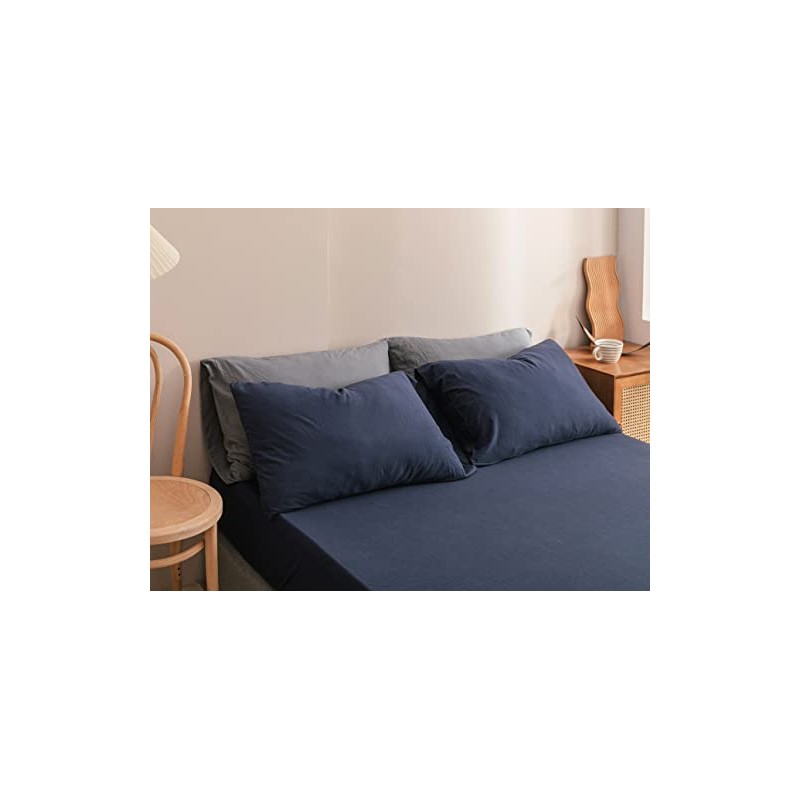 KAIANG Jersey Knit Pillowcase, All Season, Soft, Cozy, 100% Cotton, Navy Blue, King