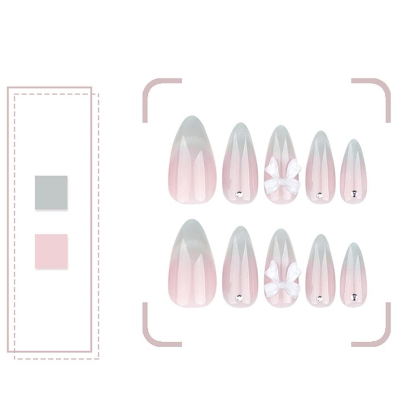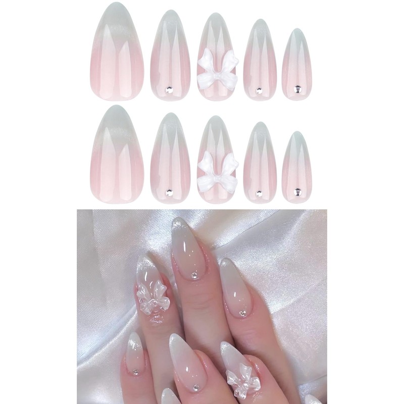 Kaichen Französisch Katzenauge Künstliche Nägel zum Aufkleben Mandel, Katzenauge Schleife Press On Nails Mittel, Beinhaltet 24 Nägel, 24 Klebeetiketten, 1 Maniküre Stick, 1 Mini Feile