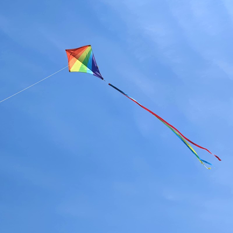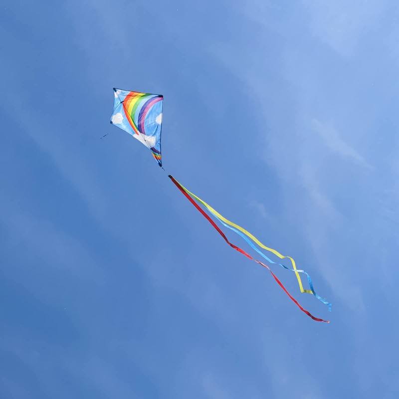 - Unique Double Rainbow Diamond Kite Set. Size of kite is 31.5"*27", definitely a kite kit designed for children. Each kite is individually packaged and comes with a kite handle with 300ft of sturdy kite string, fly it as soon as you get and without waiting.