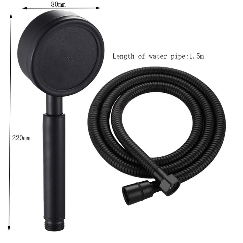 KAIISSA Shower Head Set with Hose Hand Shower 80 mm Diameter with 1.5 Meter Stainless Steel Shower Hose Water Saving High Pressure Hand Shower for Bath and Shower Black