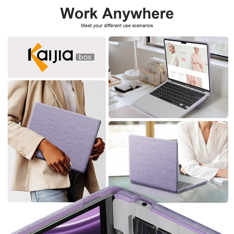 KAIJIAbox Compatible for MacBook Air 13.6 Inch Case M4 M3 M2 2025 2024 2022, Foldable Stand, Hard Shell, Woven Fabric Cover for MacBook Air 13 Inch, MacBook Air Cover, Models A3240 A2681 A3113, Purple
