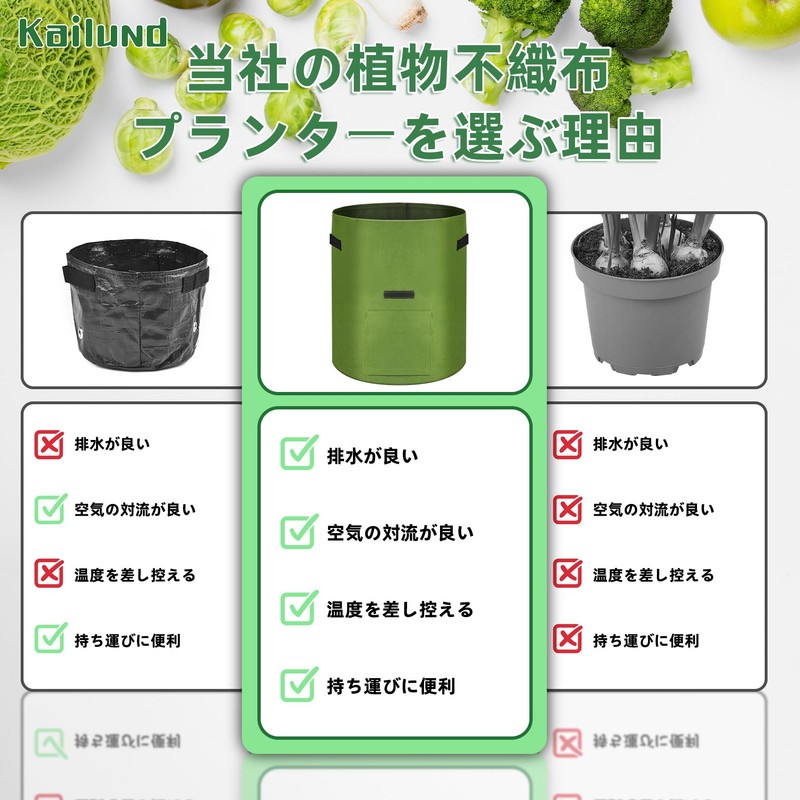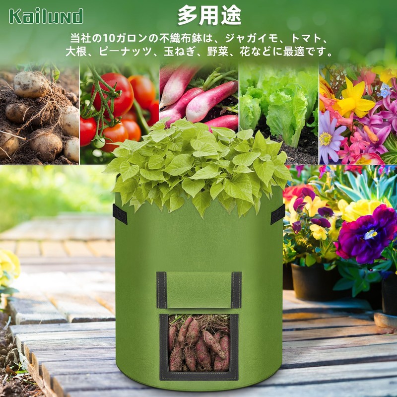 - Grow Plants: Non-woven planter designed to allow the plant roots to grow and absorb nutrients in ventilated areas. Adopts non-woven material that is easier to retain moisture than ordinary potted plants, supporting roots growth. Contents: 10 Gallons / Set of 3