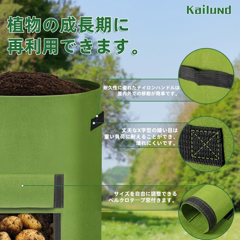 Kailund Nonwoven Pot, Non-woven Planter, Set of 3, 10 Gallon, Felt Planting Bag, Felt Planter, Non-woven Plant Pot, Planting Bag, Thick, Large Capacity, Breathable, Potatoes, Carrots, Vegetables,