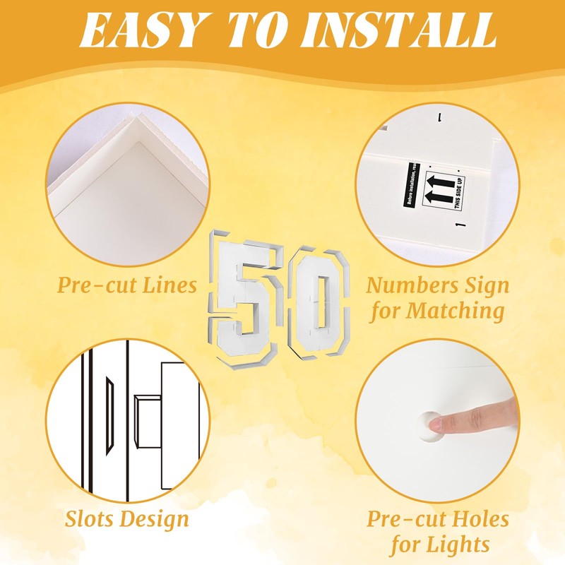 - SLOT DESIGN: 4ft number 50 frame kit, included instruction manual ensures you breeze through the setup process, light strings and LED bulbs of the same model, pre-cut foam boards with slots fit perfectly, providing a professional finish without the stress, enjoy the process, only takes less than 30 mins to build this giant, gorgeous light up numbers