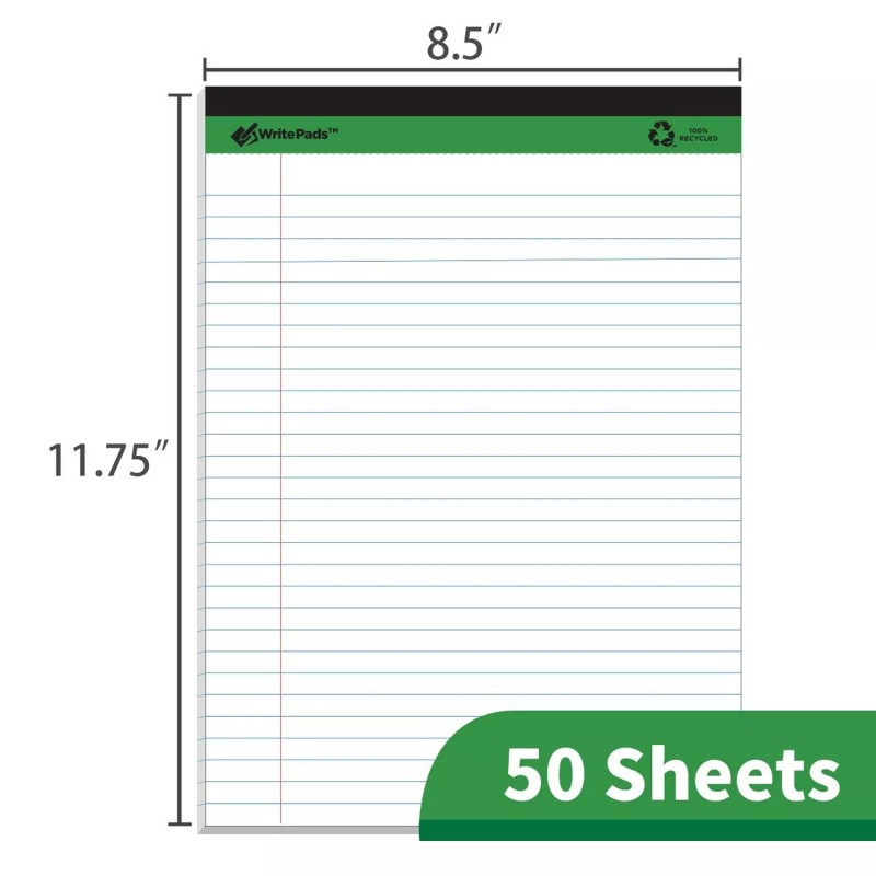 KAISA Legal Pads Writing Pads Recycled Paper, 8.5"x11.75" Wide Ruled, 50 shee...