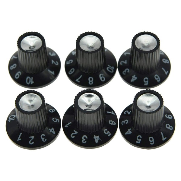 KAISH 6x Guitar AMP Amplifier Skirted Knobs Black w/ Silver Cap for Fender St...